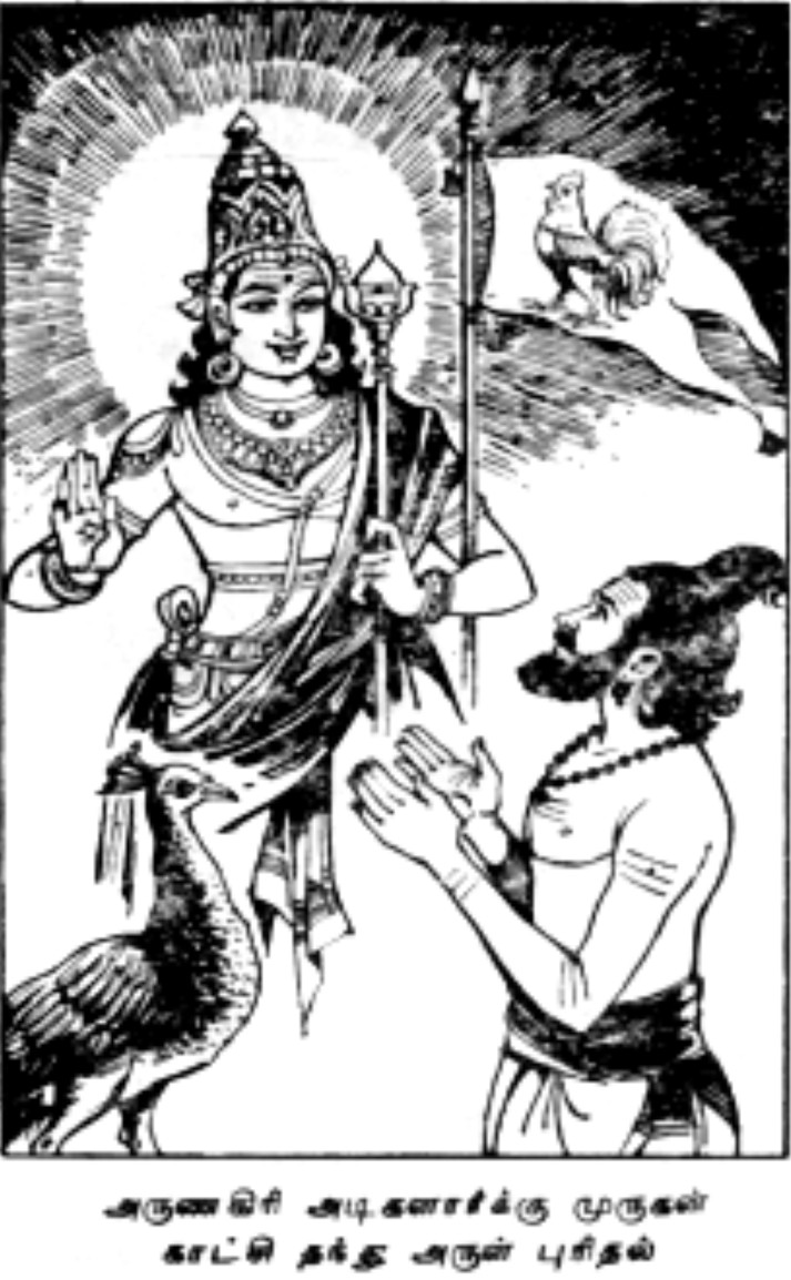 You took birth in this world to spread the fame of your Lord Muruga and let them stay here forever, you went to the celestial realms to bring back the PariJatha flower for the ruling King Prabuda Deva Maharaja to get back his sight by transferring your soul into a parrot's body and among the poems that have a rythmic Chandas known as VaNNam you are the greatest of them all, oh Arunagiri Natha!